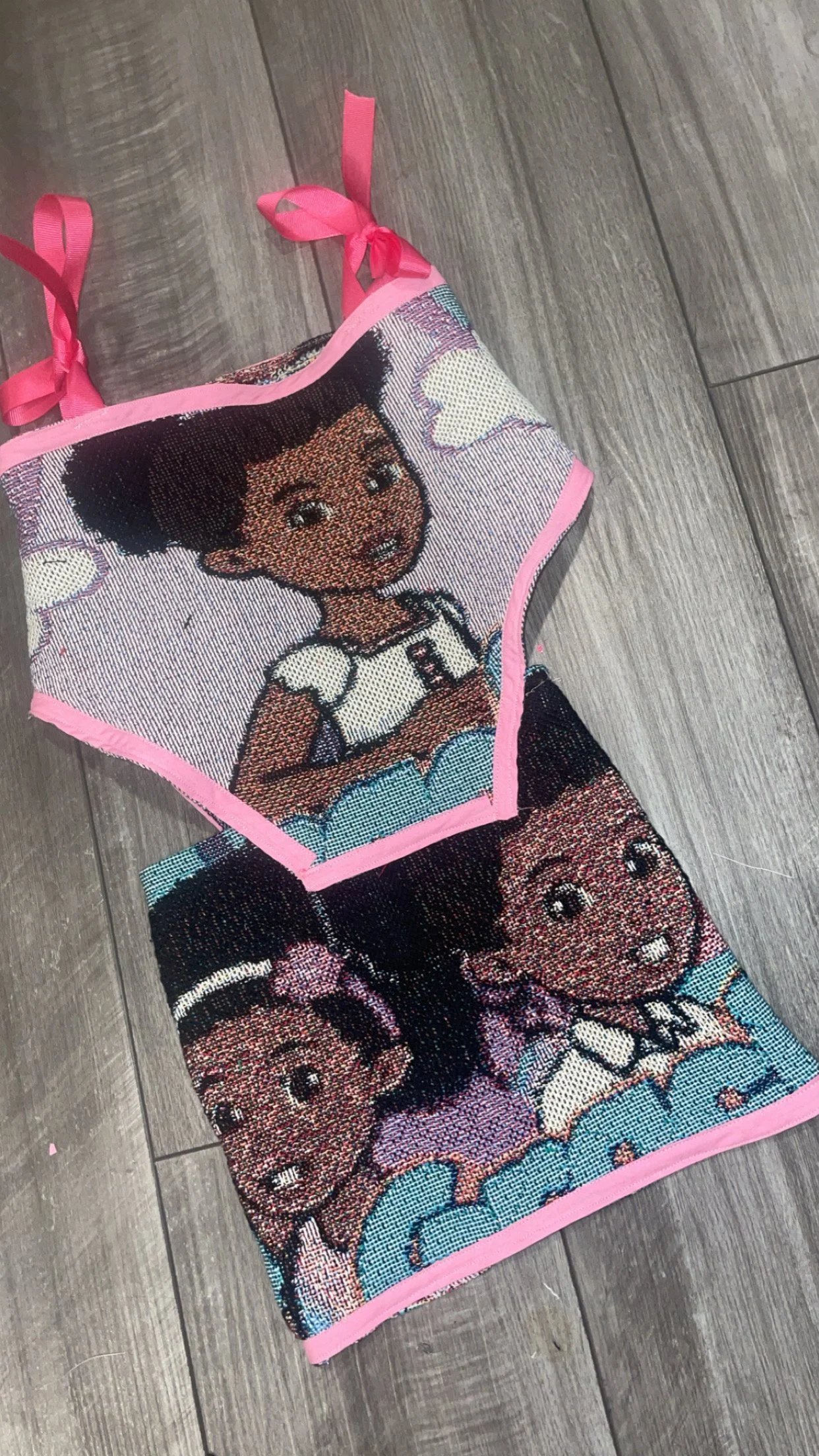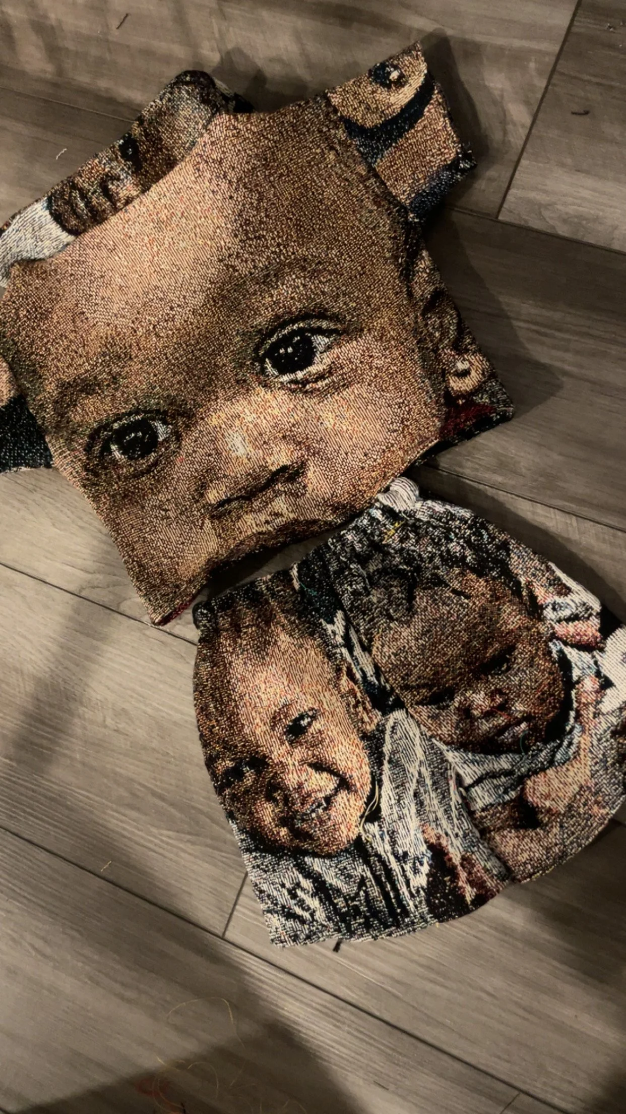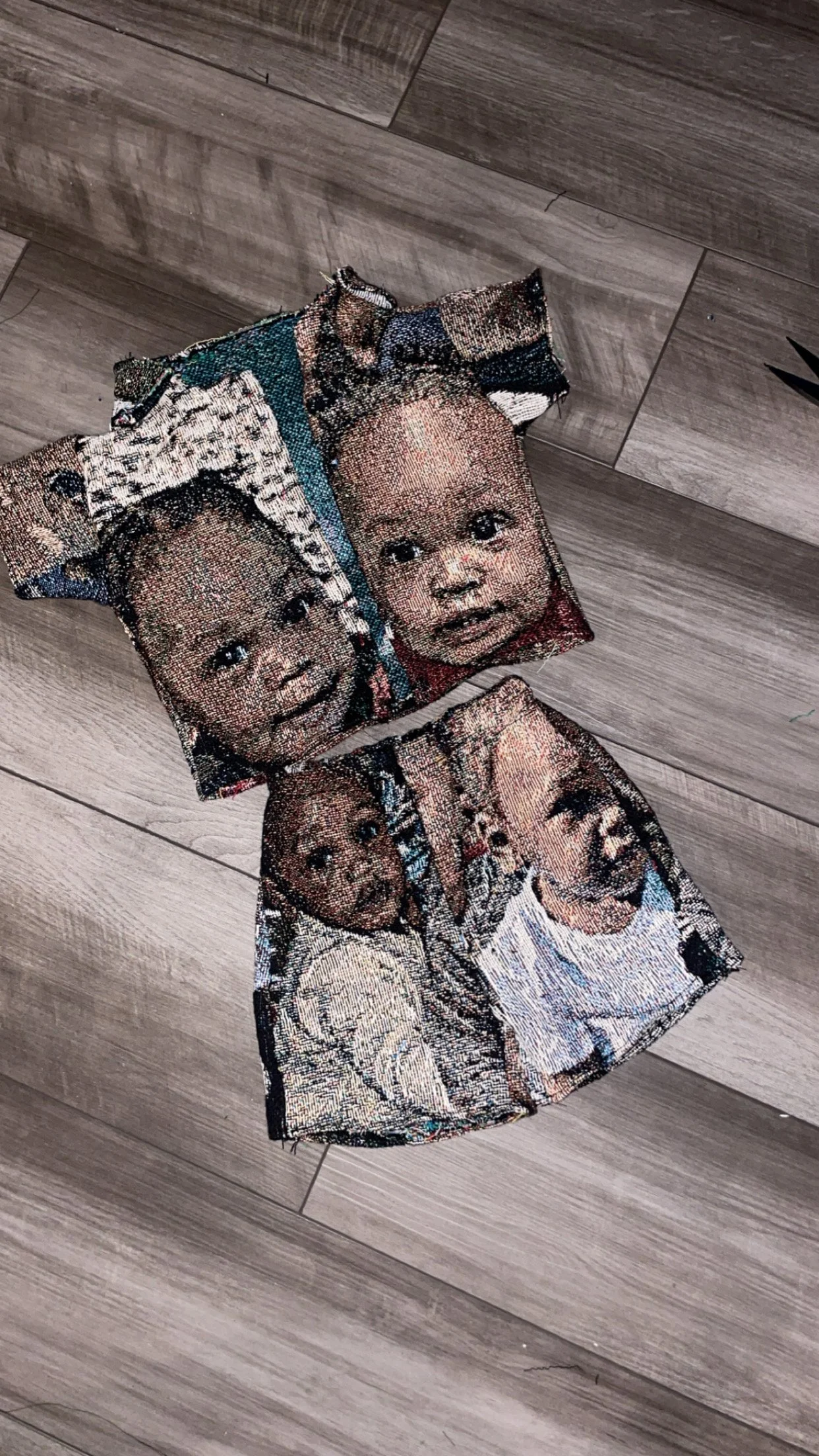 Fly with me dress $95.00 Tapestry Bucket hat w/ purse $115.00 Tapestry Skirt $175.00 Toddler Tapestry Jersey $165.00 Tapestry Pants $175.00 Tapestry Vest $155.00 Children custom Tapestry set $175.00 Tapestry Jacket $275.00 Custom Tapestry Hoodie $225.00 Custom Tapestry Sweater $185.00